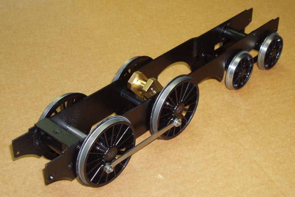 This image shows the completed chassis; I used Slaters wheels per the ARM1G specification. The transverse member at the front is a support for the pseudo-boiler.