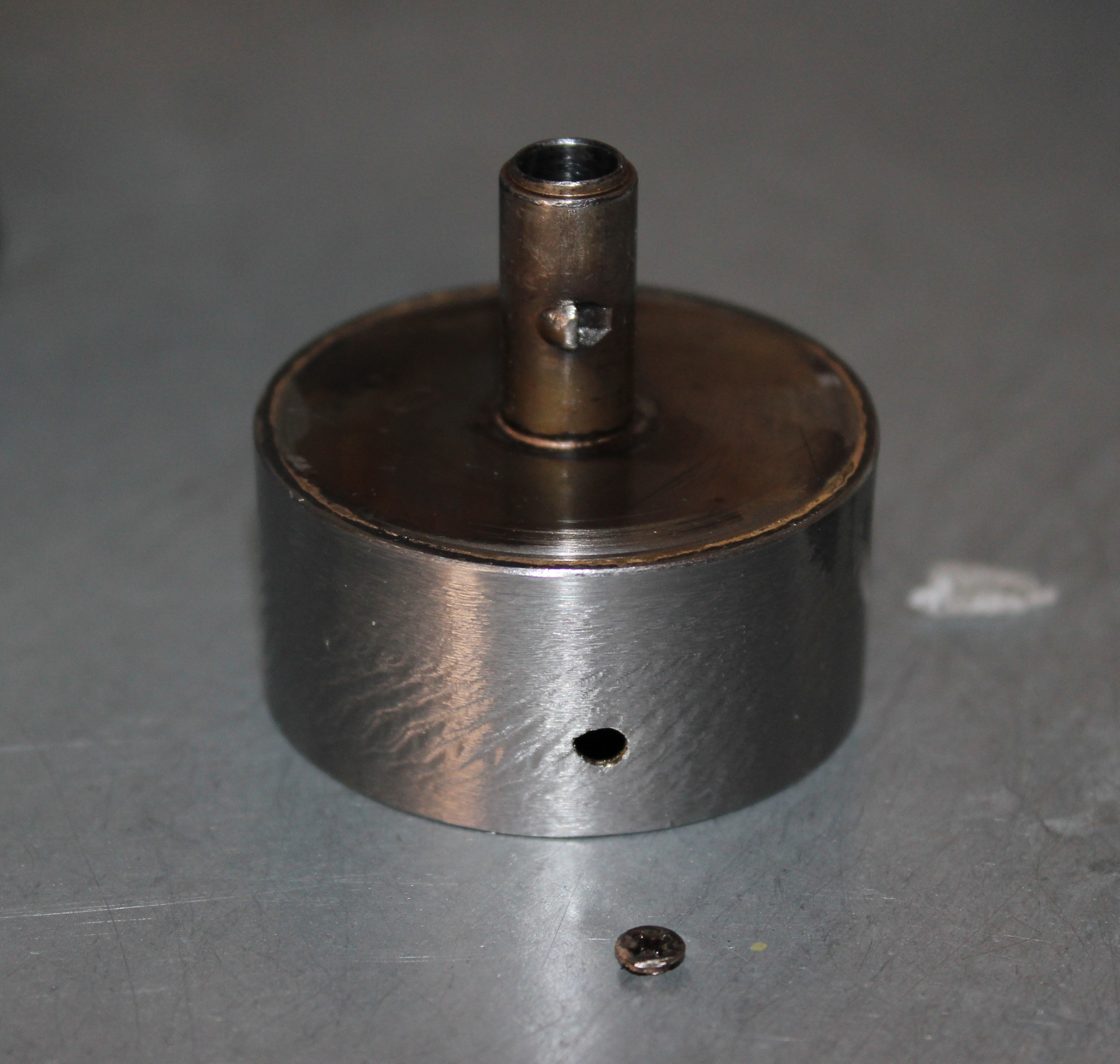 by a decision to re-site the governor. The long screw that sticks out is a temporary adjustment