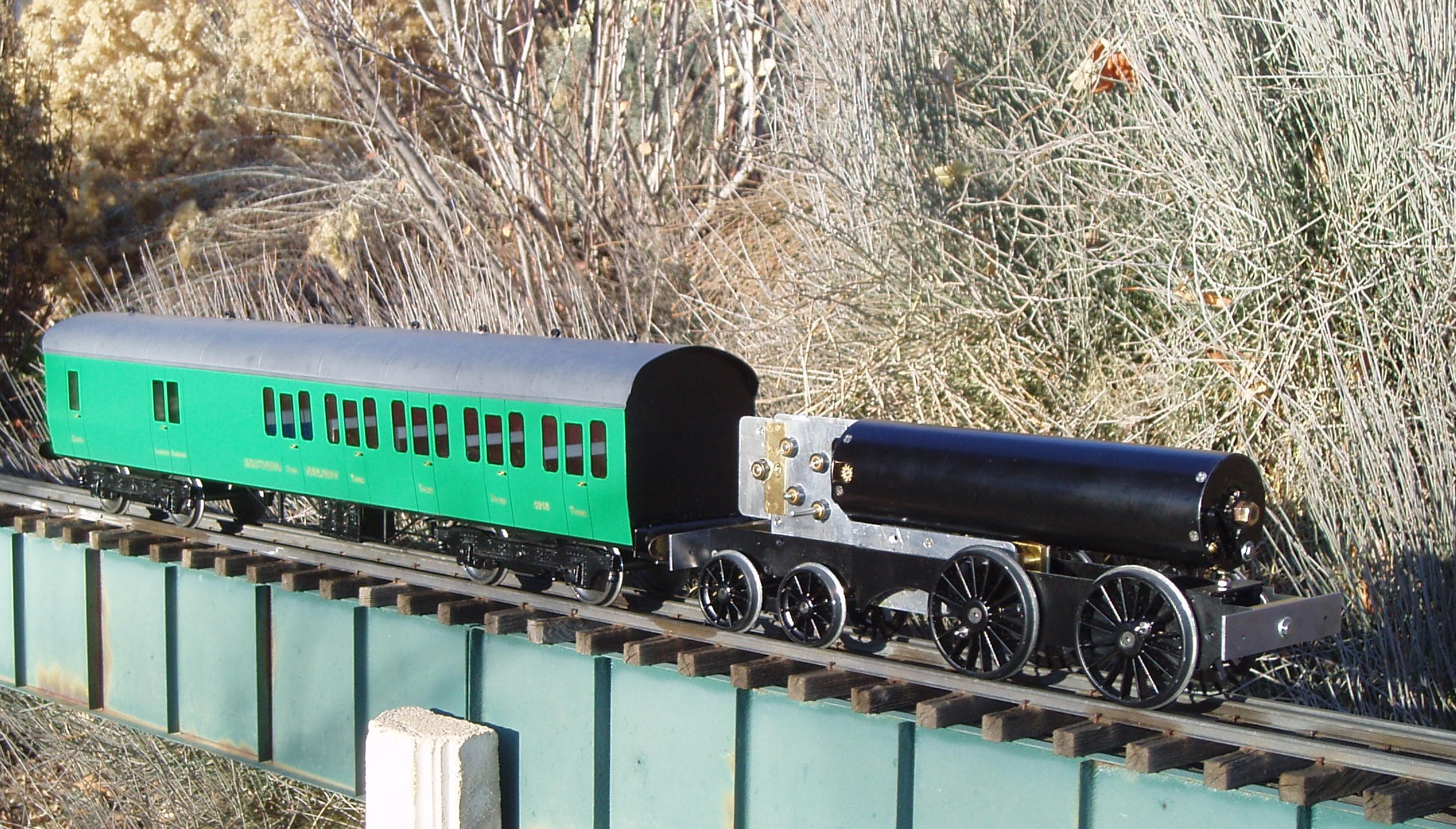 The video below shows the repaired locomotive running light; it is a very brief video that may be replaced at some point. The railway on which the locomotive is running is the same one as that used earlier. The decade that separates the videos has resulted in a lot more plant growth in the garden, which may be evident to the reader. |
