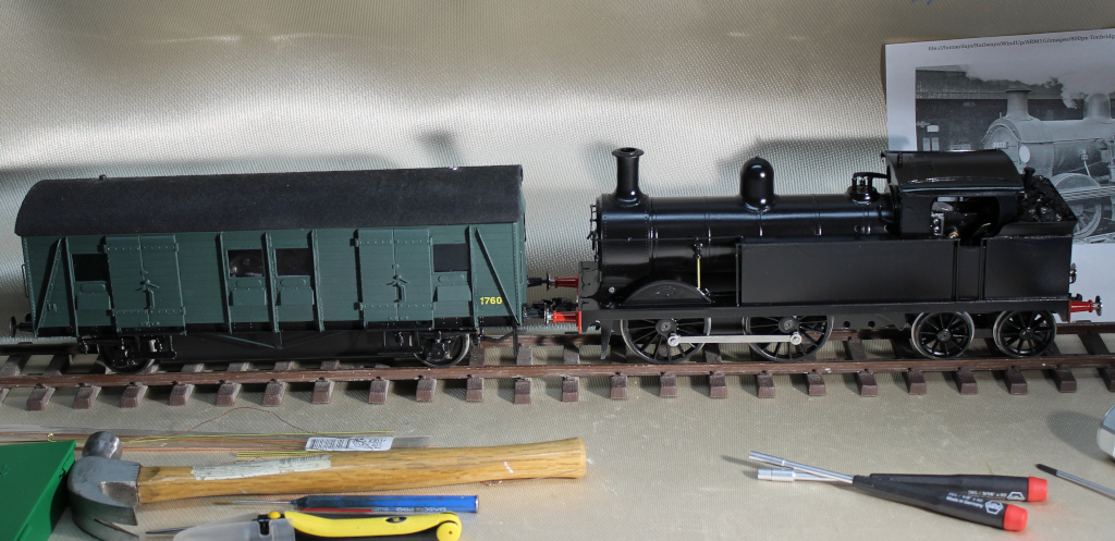 This shows the essentially complete locomotive sitting on a module from the portable railway.