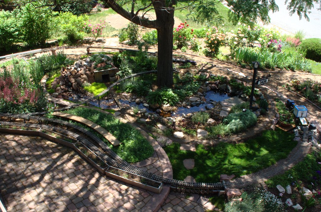 How It Started Go Back to the Top In the autumn of 2003 a tree-man told us that the trunk of a thirty-feet high honey locust tree had rotted so that it would not be long before the tree fell. Now, the tree was a lot less than thirty feet from my bedroom. So, it was taken down, along with some juniper bushes that had become ratty, and a few other plants and bushes. All this destruction left a mess. The net result was an extensive re-design of the front garden, implemented in 2004 and the following years, which included paths, flower beds, a retaining wall, and many cubic yards of new dirt. The railway was an afterthought that came along in the summer of 2004, together with a stream and tiny pond. The reason that this history is important to garden railway people is that, for the first five years or so after the new installation, the dirt settled substantially. And so the railway track settled, a lot, even though the dirt was tamped initially; and this settling caused repeated re-work. The settling has more or less ceased by now, eight years later; but there is a cautionary note for the wise in this history. |