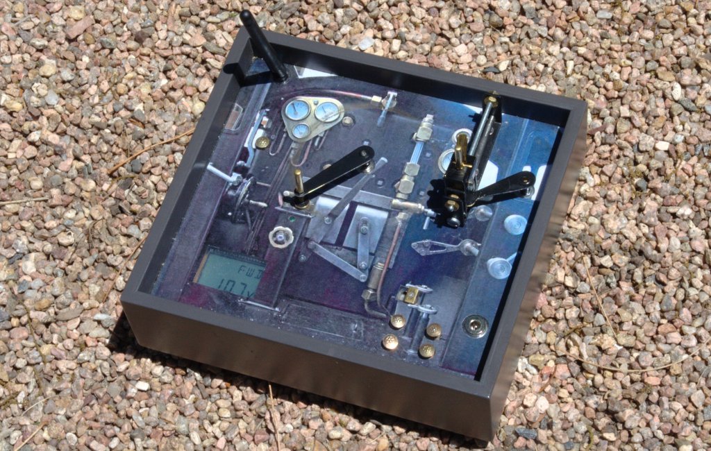 The second difference occurs where the wide gauge rail crosses the narrow gauge rail. In the left image, an active point, here called a secondary point, which moves at the same time as the junction primary points, guides and supports the wheel. In contrast, in the right image a static check rail is used which only guides the wheel. There is a potential de-railing problem in the latter case, which affects the narrow gauge wheels. The wide gauge wheels are not affected, their path is identical to that going through a normal frog. Wheels, particularly small wheels, do not do well as they cross the large gap in the right image; this is the gap that is filled by the secondary point shown in the left image. Wheels can drop into the gap as they cross it, and this can lead to either or both of wheel flanges snagging on a point and de-railing, or to significant rocking of the vehicle that the wheel is supporting, and any problem that may result from that. This problem occurs because of a desire for the junction to handle a wide range of wheels. There are at least three standards for gauge 1 track and wheels (G1MRA, NMRA, and NEM), which are not properly compatible. And, somewhat amazingly, manufacturers seem quite happy to invent their own variants. Add in the significant differences caused by the different scales, ranging from 1:32 to 1:13, and the resultant jumble of sizes means that normal railway track-design procedures, e.g., controlling wheel tread widths and track flange clearances, do not work. My dual gauge junctions with secondary points have been successful in dealing with these issues, to the point where, normally, I never think of them. However, the junction shown in the right image is the manually operated junction from the steam up track, and I have become somewhat wary of it. The potential problem occurs in traffic coming from and going to the steamup bay, which is slow speed traffic on the narrow gauge track. Sure enough, I have had gauge 1 equipment de-rail as it is moved onto and offof the mainline. I am inclined to stick with an active point in the future. ![]() ![]() Remote point operation requires the introduction of some sort of system. My inclination is to guess that the pneumatic system, which has had a very low component failure and maintenance rate, is better than an electric system would have been. I have been very happy with pneumatic control; it works in all weathers here in Colorado. I have heard that frozen condensate can be a problem in damper climes. Power and ControlGo Back to the Top There is no track power, locomotives must use their own motivation. Hand-push and clockwork are known on the NG&DR; but, for the most part, locomotives use on-board batteries or boilers. A dozen rechargable AA batteries in series (14.4 volts) seems to be quite adequate for a few hours of running; and the steam engines' run times vary, depending on the locomotive design. Most of the railway's locomotives are controlled by one controller, shown in the lower image. This is a re-packaged Spektrum 2.4GHz surface racing car controller with a 300 degree linear potentiometer replacing the standard 85 degree, short-travel, trigger throttle unit. I have made a couple of other controllers, dedicated to particular engines, which have used logrithmic potentiometers instead of linear, and I recommend this to anyone thinking of using a similar system. The advantage is more controller travel at low speeds for any given regulator change; thus there is more sensitivity and better control accuracy, see Using a Logarithmic Taper Potentiometer (in Radio Control Installation). The controller shown has three channels. My diesel outline engines use all three: regulator, reverser, horn; my live steam engines use one for the regulator if they have slip eccentric valve gear, two otherwise. |