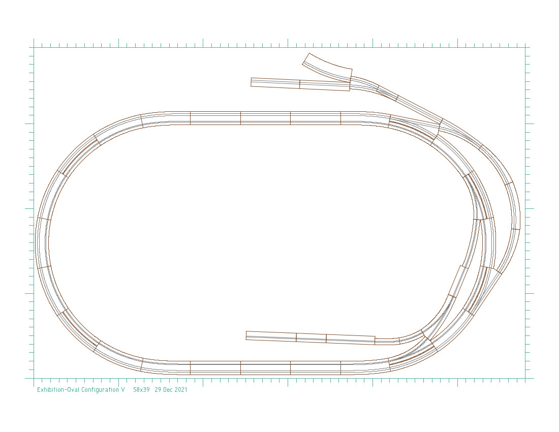 Railway In Use These latter day images show how the railway has developed since its first use. Two images below are of configuration U (shorter mainline straights compared with configuration V) taken in early June 2021. It was a bad day for the railway and railmen, mainly because of the intense Sun and the resultant three-digit temperature leading to module distortion, alcohol fires, and other irritants. |