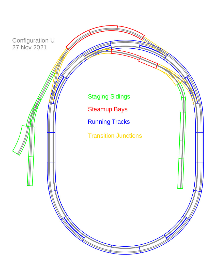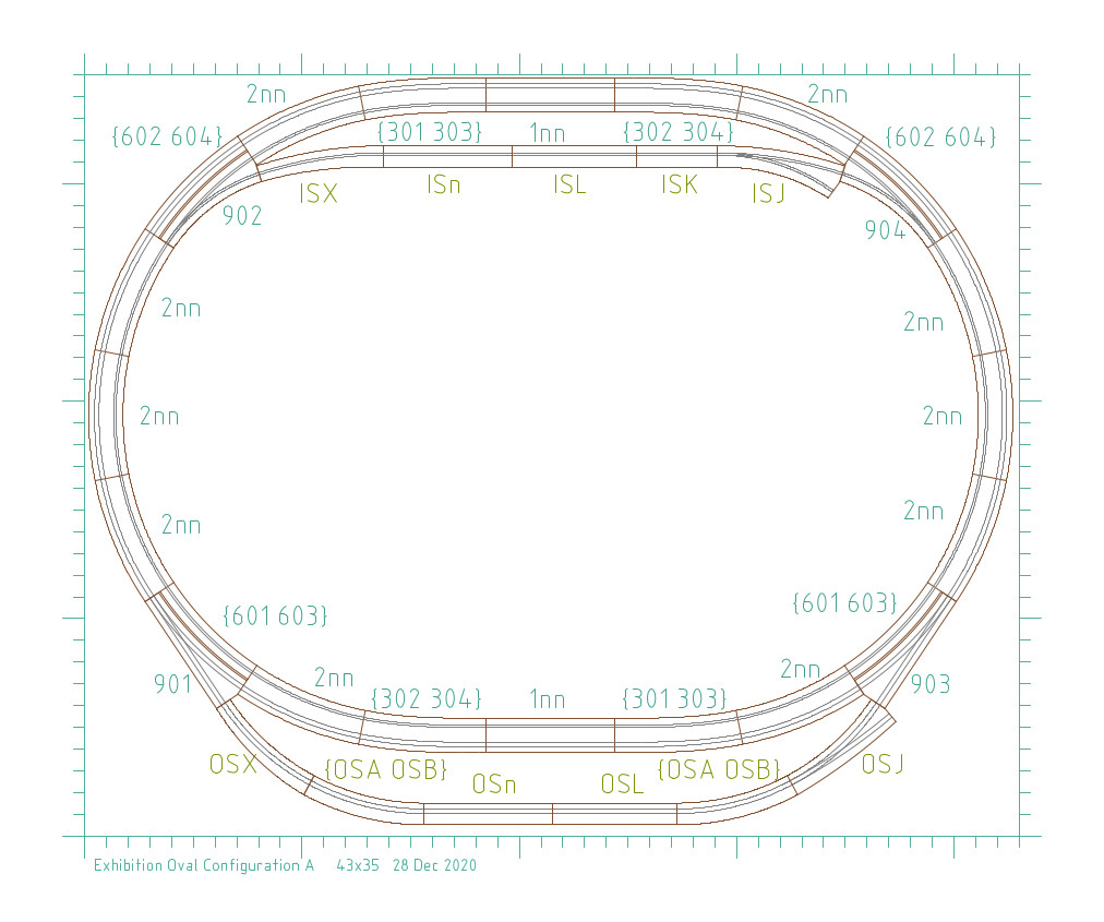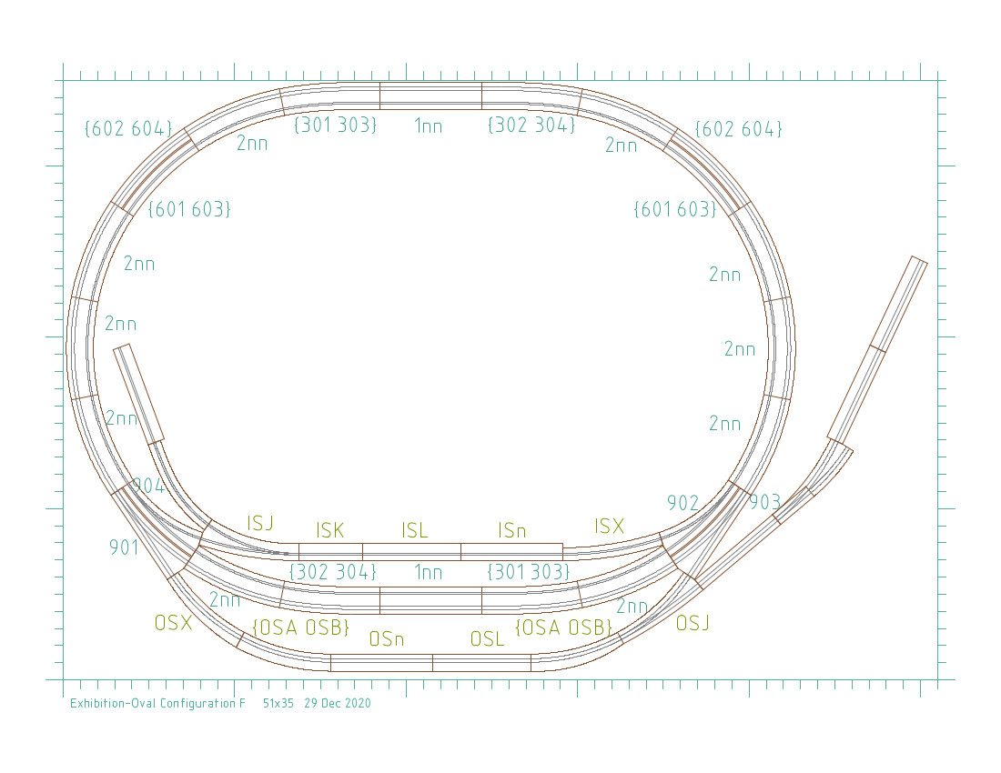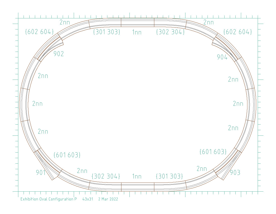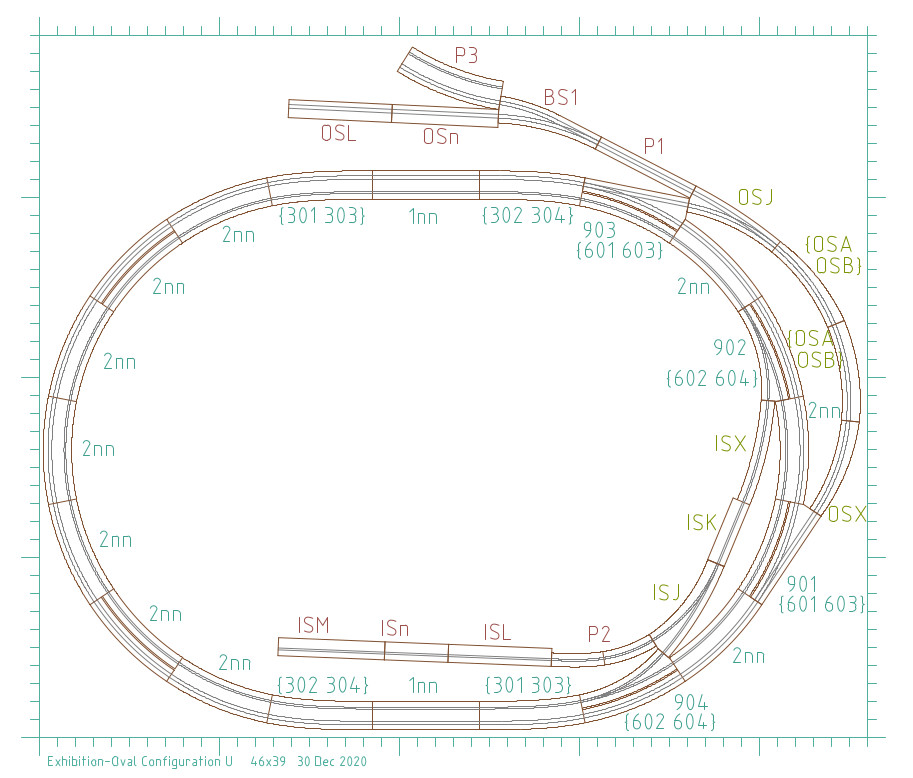 the basic oval, configuration P, as shown in the image below. This trackplan shows the