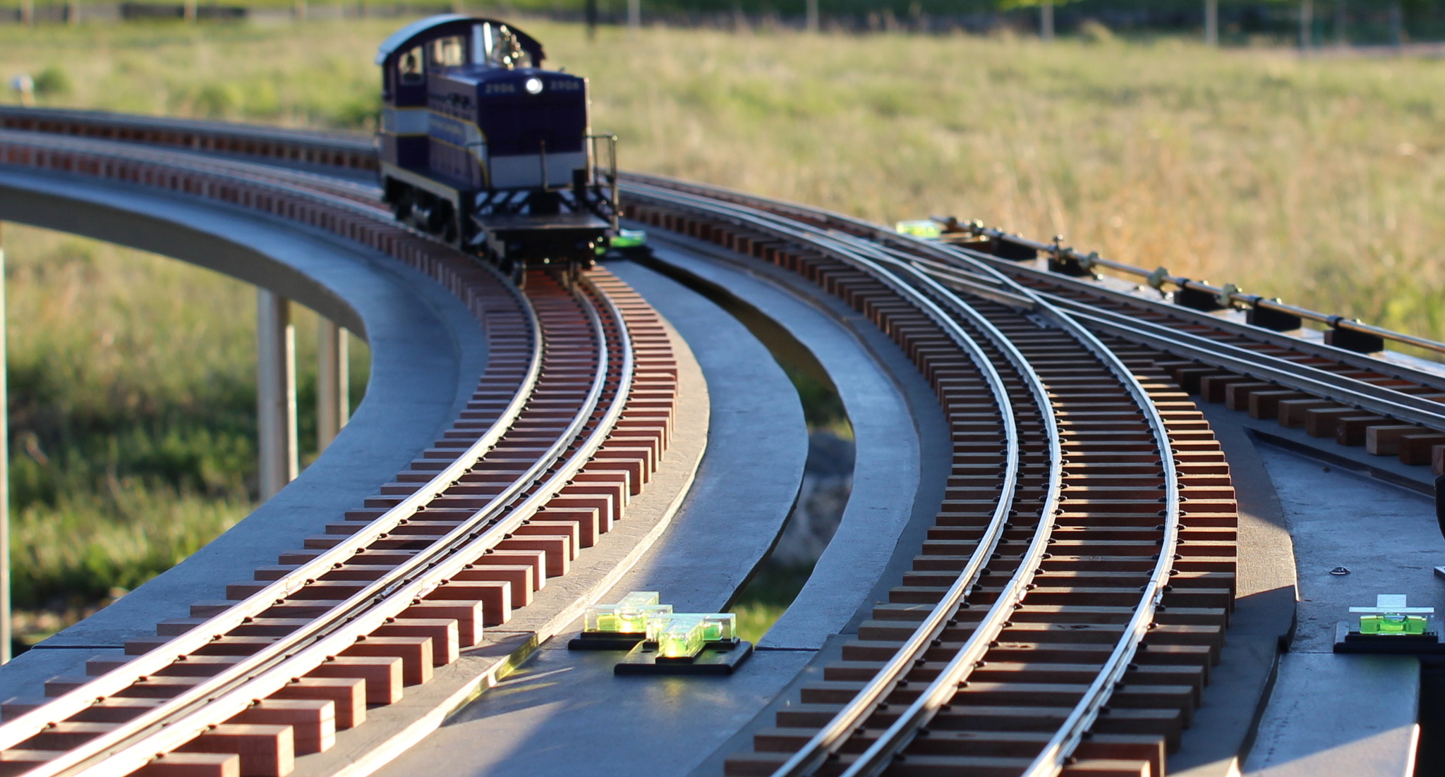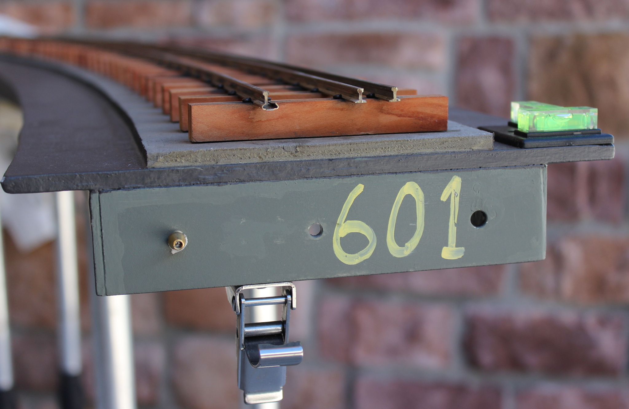 Multiple Track Interface Go Back to the Top It was decided early on to have two tracks on the portable railway; the reasoning is doubtless the same as for essentially every other portable railway: a continuous railway has an inside and an outside, both can be used. I wanted to support gauges 0, 1, and 3; and gauge 1 is the most popular. Thus, the portable railway has a inner dual gauge G0/1 track, and an outer G1/3 track.